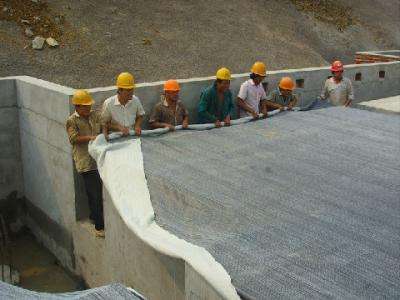 在坡面上,對(duì)土工布的一端進(jìn)行錨固根據(jù)現(xiàn)場(chǎng)情況,土工布廠(chǎng)家確定土工布尺寸,在鋪設(shè)期間使用并保留到鋪...